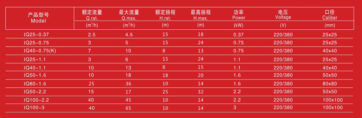 IQ型輕(qing)小型單級離心(xīn)泵由電機、水泵(bèng)、密封三部分組(zǔ)成。水👈泵與電機(ji)之間才用單端(duān)面機械密封。用(yong)于河水、井水、養(yǎng)殖、園林、旅館、食(shi)堂及建築等給(gei)排水、養護用。