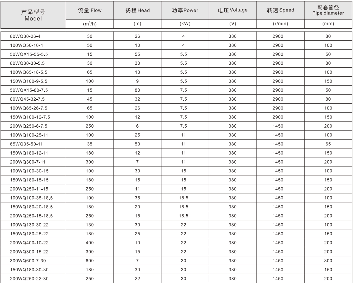 WQD無堵塞污水(shuǐ)污物潛水電(diàn)泵系列電泵(beng)是電機和水(shui)泵㊙️以下泵式(shì)結構而成的(de)電力排灌設(she)備,适用工程(cheng)❓建築工地、煤(mei)礦、冶金、印染(rǎn)、紡織等場合(hé)排灌污水之(zhi)用,也可用于(yú)清水排灌。